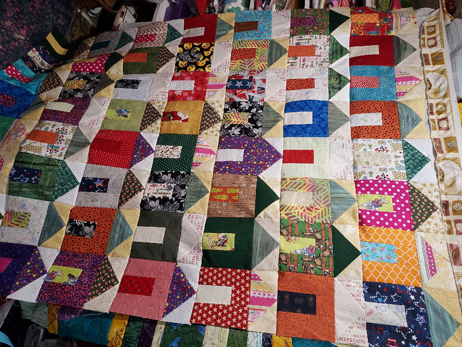 It is a 3 yard quilt that I pieced in July 2020, I think. I finally finished the quilting in February 2024.